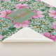 Um padrão floral mosaico com flores cor-de-rosa e folhas verdes num efeito de vidro colorido. Criado a dar um toque artístico, excelente para cama e acessórios de banho.