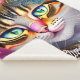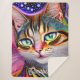 Arte de gato adorável em cores pastéis brilhantes com fundo de céu noturno estrelado e um nome personalizado.