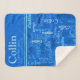 Texto de nome curto tipográfico azul, azul escuro, azul mudado e azul-céu, em um nome personalizado azul-claro real que significa design de cobertor. A cor de fundo pode ser alterada se necessário. Texto gráfico personalizado divertido cobertor personalizado. Personalize com seu próprio nome abreviado, lendo Collin Um jovem cão. Leal, vencedor das pessoas. © Art, design e nome significa Sarah Trett para www.mylittleeden.com