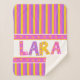 Este cobertor de desenho único tem o nome, Lara. A inscrição gráfica original apresenta flores bonitas e gráficos estelares e listras cor-de-rosa e roxa. Outros nomes estão disponíveis. Se eu não tiver o nome que você está procurando, por favor, entre em contato comigo, ficarei feliz em criar um só para você. Arte gráfica original e design por Sarah Trett para www.mylittleeden.com e nome. Outros itens correspondentes estão disponíveis.