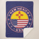 Crachá do Estado do Novo México com bandeira do Estado do Novo México e bandeira dos EUA cores, forma arredondada. Emblema do Estado do Novo México. Selo do Estado do Novo México. Coleção dos Estados Unidos.