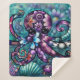 Cobertor Sherpa Octopus Floral Teal Roxo Azul Costeira