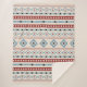Padrão de motivos mistos asteca em detalhes de cor azul, vermelho-burlu, preto e creme em um design de fundo de cor creme.
