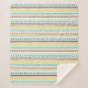 Cobertura Sherpa com padrão geométrico amarelo-dourado, azul-aqua, branco, preto e cor-de-pêssego.