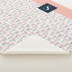 Um cobertor de sherpa personalizado com um design de padrão de verão exótico, rosa-rosa, e um monograma personalizado em uma borda cor-de-rosa no topo.