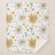 Um cobertor botânico charmoso, com flores amarelas e brancas estilizadas com folhas de cinza, acentuadas por pontos abstrato e formas em amarelo e preto. O fundo branco limpo melhora sua estética fresca, alegre e orgânica — perfeita para amantes da natureza, temas de primavera e verão e temas florais brancos.