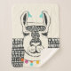 Partido Llama III de Chariklia Zarris. Apresenta a face de uma lama em cores restritas com um fundo geométrico e divertido.