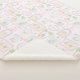 This Christmas blanket features pastel illustrations of traditional nativity scenes of baby Jesus sleeping in a manger with Mary and Joseph, three wise men and angels.