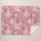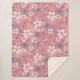 Este cobertor Sherpa apresenta flores e folhas em tons pastéis de rosa e roxo sobre fundo rosa.