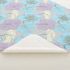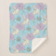 "Fique confortável com esse pequeno cobertor de sherpa com flores deliciosas de trevo azul e roxo sobre um fundo pastel macio. Perfeito para viagem, crianças, ou adicionando um sotaque quente a qualquer espaço, este cobertor de arbustos combina conforto e estilo."