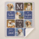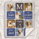 Celebre seu melhor amigo com um cobertor personalizado de colagem de fotos de memorial de animal de estimação em um design moderno e retrô bege cinza, azul marinho e marrom. Este cobertor exclusivo de lembrança de animal de estimação é o presente perfeito para você, familiares ou amigos para homenagear aqueles que são amados.