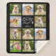 Honre seu melhor amigo com um cobertor personalizado de colagem de fotos em memorial de animais de estimação em um elegante design branco e preto. Este cobertor exclusivo do memorial do cão de guardiã é o presente perfeito para você, família ou amigos para honrar aqueles que amamos. Citação: " Deixaste as impressões da Paw para sempre no meu Coração." Esperamos que a exibição de fotos de seu cachorro no cobertor de memória amorosa traga alegria, paz e memórias felizes. Visite nossa coleção para combinar ideias de presentes memoriais para animais de estimação, e presentes de fotos de perda de animais de estimação. Personalize com 11 das suas fotos favoritas de animais de estimação, nome personalizado. Veja 'personalizar este modelo' para mudar fotos e nome. É melhor recortar suas fotos centradas antes do upload. COPYRIGHT © 2020 Judy Burrows, Black Dog Art - Todos Os Direitos Reservados. Pet Memorial Personalizado Presente Pet Perde Keepsasaet Sherpa Blanket