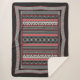 This ultra-plush Sherpa throw is a stunning piece of wearable art, drawing inspiration from the powerful, graphic, and geometric designs found in the ceramics and ritual artifacts of the Minoan civilization on ancient Crete. The design features bold, alternating vertical bands of patterns, including repeating chevron triangles, stylized wave chains, and dense crosshatching in a dramatic palette of black, rich red, and creamy white. This stark, compelling color scheme evokes the sophisticated ornamentation often found in the royal apartments of the Palace of Knossos.