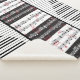Um design de música divertida, o amante de teclado e piano, com teclados de piano curvos à esquerda e à direita, e um design de pontuação de música no meio em preto e branco com notas de música vermelha semitransparentes Piano e partitura de música 2