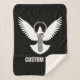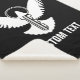 Pomba voando com ícone de chave simples. Texto personalizado.