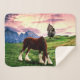 Um garanhão considerável de Clydesdale pasta enquanto o sol se ajusta.