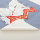Encoste, brilha, raios estelares, uma Dove, com asas erguidas, carregares, uma faixa vermelha-brilhante, em seu bico, inscrita com as palavras "Paz, Amor, Alegria", destacada, em reluzentes, estrelas.