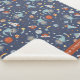 cobertura Espaço-temático do sherpa para miúdos ou bebês com um teste padrão dos astronautas da preguiça que flutuam no espaço ao lado dos navios do foguete, das estrelas de tiro, dos planetas, das luas, e das naves espaciais estrangeiras no azul, no vermelho oxidado, e no amarelo. Adicione o nome da sua criança em letras de bloco encantadores.