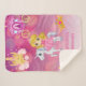Qualquer pequena princesa adoraria este confortável cobertor de sherpa rosa numa noite legal. Tem todas as coisas que uma princesa ama, um castelo, coroas, um treinador, e uma princesa fofa andando num unicórnio.