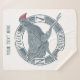 Uma ilustração de um pukeko ou galinha do pântano. Este pássaro é desenhado no estilo de um impressão de madeira ou lino cortado. Pukekos são aves nativas da Nova Zelândia/ Aoteatoa. Este pukeko é azul, com um bico vermelho e penas de cauda brancas.