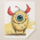 Ein freundliches, fröhliches Ein-Auge-Monster mit bunten Punkten und roten Hörnern. Perfekt für Kinderprodukte, Grußkarten oder Poster im Kinderzimmer – es bringt Spaß, Farbe und ein Lächeln in den Alltag.