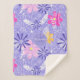 Este lindo cobertor floral Sherpa apresenta penas, flores e paisagens desenhadas à mão em branco sobre fundo roxo claro com flores coloridas cor-de-rosa, laranja, rosa pastel e acentos roxos mais escuros - personalize com seu nome e monograma - por katz_d_zynes