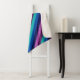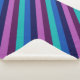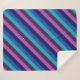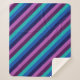 Um cobertor sherpa de tamanho médio com um padrão colorido de faixas diagonais em azul legal, azul-oceano, azul marinho, roxo de ameixa e lavanda.