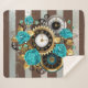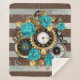 Cobertor Sherpa Relógio e Rosas de Turquesa em Striping