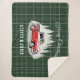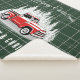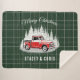 Diga "Feliz Natal" com esse nome personalizado e um cobertor de mensagens personalizado com um caminhão vermelho retrô com pinheiros de neve com roteiro e tipografia moderna em branco sobre um fundo com padrão de xadrez verde rústica. A mensagem pode ser alterada para palavras da sua escolha. Projetado por © Tim Coffey