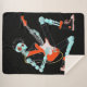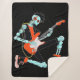 Um personagem robô toca energeticamente um violão elétrico enquanto veste uma jaqueta preta, tênis e o violão conectados diretamente à sua cabeça. As cores brilhantes realçam o violão e os calçados, adicionando uma vibração dinâmica.