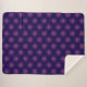 Design geométrica em tons de púrpura e vermelhos com traços de vidro manchado.