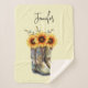 Um cobertor com uma ilustração fofinha com botas de cowboy cheias de girassóis. Imagem original pintada com aquarelas.