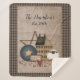 Este cobertor Sherpa é perfeito para sua antiga casa primitiva. Há uma casa colonial de mostarda amarela saltbox, uma estrela da videira, placa primitiva azul com uma estrela nela, uma ovelha branca fluffy, uma foto SIMPLIFY enquadrada e muitas videiras de framboesa vermelha. O fundo é feito em um olhar de tecido com borda de verificação preta e castanho. Personalize com seu nome de família e data estabelecida com o modelo fácil de usar fornecido. No meu compro estão disponíveis vários outros designs de coordenação, bem como travesseiros correspondentes. Você pode me encontrar em www.zazzle.com/digiscrapthat. Isso também seria um maravilhoso presente de casamento!