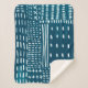 Sashiko Stitches III de Chariklia Zarris. Possui linhas e formas contra um fundo azul contrastante.
