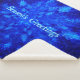 Um tema vitorioso com um enxame de flocos de neve fractais azuis. A leitura de texto "Saudações da Estação" também aparece em azul e branco brilhantes.