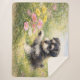 Cobertor Sherpa Schnauzer Puppy Springtime Flowers