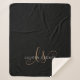 Script Feminino Dourado Negro Moderno Monograma Sherpa Blanket. Personalize facilmente este cobertor elegante e moderno sherpa com o seu monograma e nome personalizados.