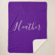 Cobertor Sherpa Seu Script Branco Personalizado em Roxo