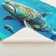 Experience an emotional underwater encounter with this detailed, stylized shark art print. The artwork showcases the ocean's apex predator gliding through sun-drenched deep blue light, contrasted by vibrant, colorful coral and tropical fish. This captivating scene masterfully blends power with the serene beauty of the marine environment, making it a compelling piece of ocean-themed decor. This truly unique design began with advanced AI generation and was then meticulously edited by a skilled artist to enhance its uniqueness, texture, and creative depth. This process ensures a distinctive, high-quality marine art print. Perfect for anyone who loves the ocean's mystery and power. Place your order today and embrace the joy of owning this exceptional piece!