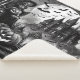 Uma ilustração preta e branca assustadora de uma bruxa esquelética com suas abóboras.