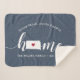 Show some home state pride with this cute rustic blue throw blanket featuring "home" in white calligraphy script lettering with a silhouette map of the state of South Dakota standing in for the letter "O." A red heart illustration inside the state map completes the design; you can change the position of the heart to your home city by opening the design tool and dragging the heart shape to your favorite spot. Personalize with your home city, family name and year established to create a perfect and memorable housewarming gift or addition to your new home.