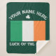 Cobertor Sherpa St Patrick's Day Ireland Flag Custom Name Shamrock