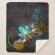 Barbeiro véu com asas transparentes azuis e lâmpada verde sobre fundo vestido, marrom, texturizado. Estilo Steampunk.