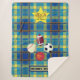 Tartan azul e amarelo (Xadrez) Sherpa Blanket Design com uma estrela grande amarela contendo o wordart 'Superstar'. Nomear personalização na parte inferior do velo.