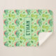 Um design de ninho de aquarela e estegossauro sobre fundo verde. Este cobertor de dinossauros fofo é facilmente personalizado com o texto de sua escolha.