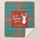 O doce cobertor de Natal da casa, doce e bonito, que você pode personalizar facilmente clicando no botão "Personalizar", apresentando a silhueta de veados e o clã Wilson tartan em laranja, e o cheque de turquesa. Perfeito para suas noites confortáveis durante os feriados. Faz um presente de excelente