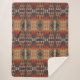 Cobertor Sherpa Teal Blue Dark Beige Brown Orange Arte Tribal