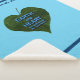 Leitura de texto azul, "TERRA e CORAÇÃO são soletrados com as mesmas letras", sobreposta a uma folha verde em forma de coração. Adicione seu próprio texto adicional. Você pode alterar a cor do plano de fundo, bem como a cor do texto adicional e das faixas.