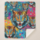 Cobertor Sherpa Tiger Head Rainbow colors paint stains