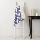 Este cobertor de sherpa apresenta um elegante design de chevron com um padrão geométrico de herringbone em um tom de trendy periwinkle com linhas pretas.